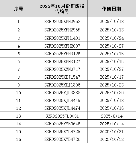 2025年10月作废报告编号